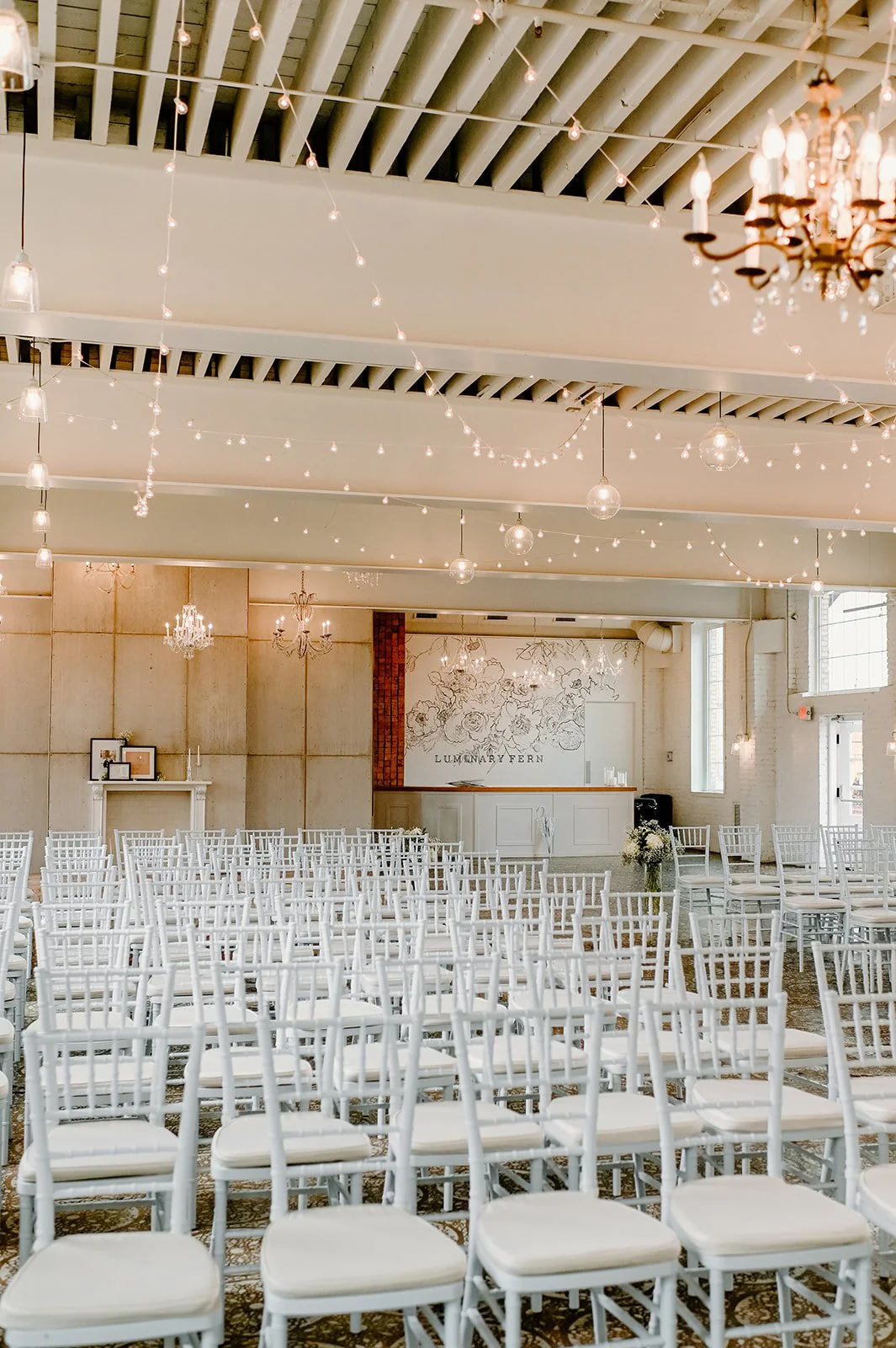 Bathed in natural light, Luminary offers 4,000 square feet of historic charm within the iconic Clocktower building of the original Northern Pacific Railway repair shop. White brick walls, exposed beams, and a stenciled concrete floor create a clean, modern aesthetic with artistic flair. Celebrate indoors, the extend your evening under the romantic glow of string lights on the back deck, overlooking the train tracks. This venue includes reception tables and chairs for up to 150 guests, a furniture vignette, and two eight-hour getting-ready suites.